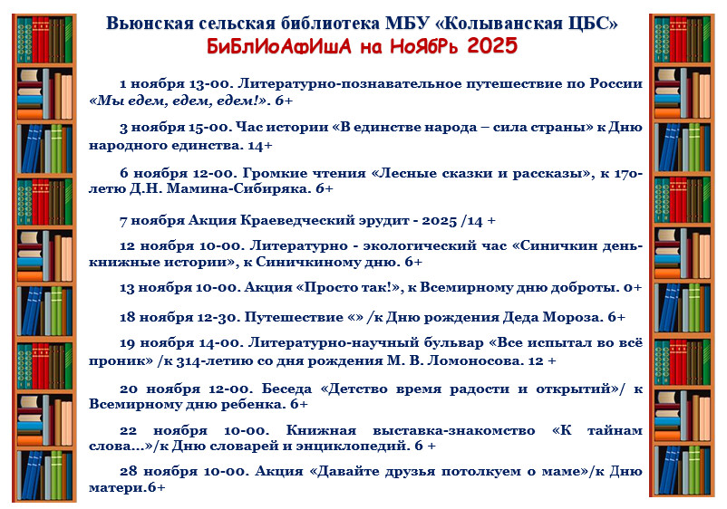 Вьюнская сельская библиотека МБУ «Колыванская ЦБС»